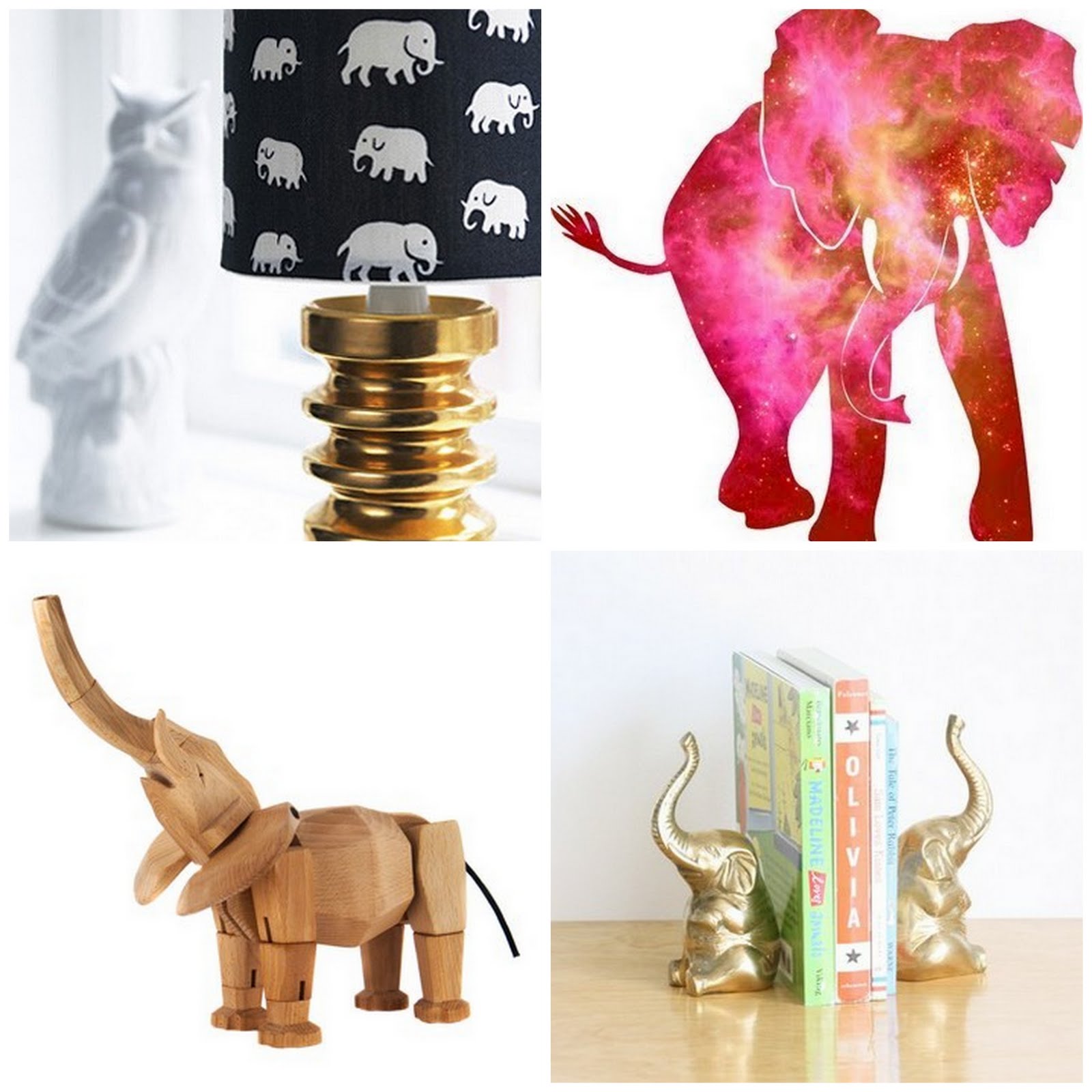 Elephant Inspiration Elephant Lamp Shade / Watercolor / Wooden Elephant / Brass Elephant Bookends Every home needs a a touch of wild, don’t you think?